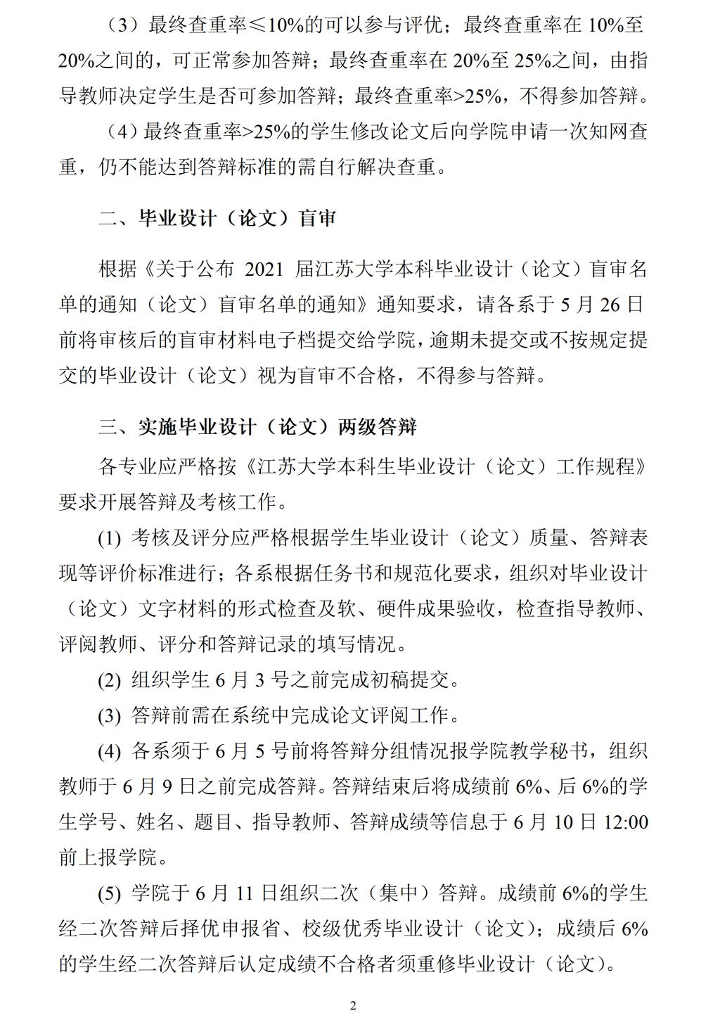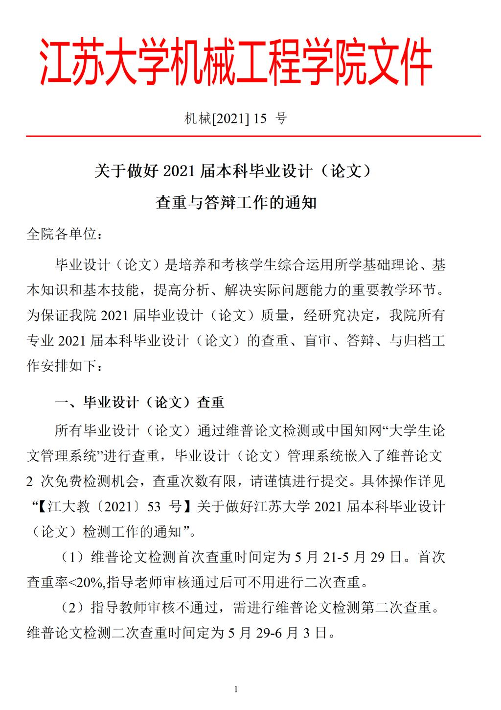 关于做好2021届本科毕业设计(论文)查重与答辩工作的通知-机械2021(15 号)