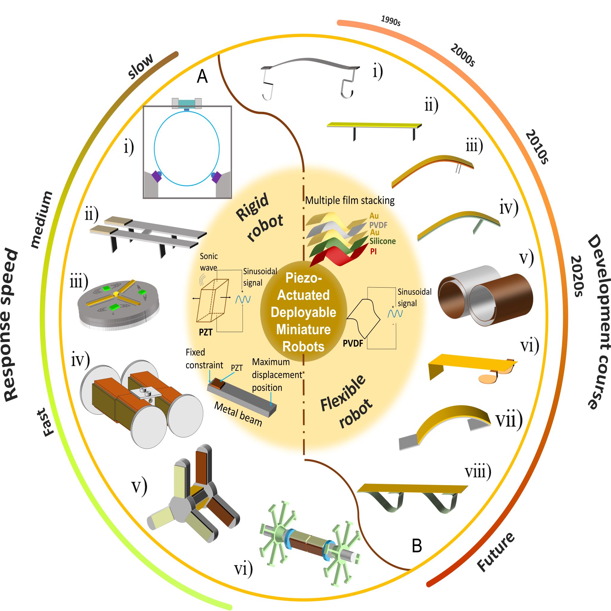 图1 压电机器人的比较分析——突出响应速度和发展历程