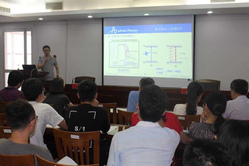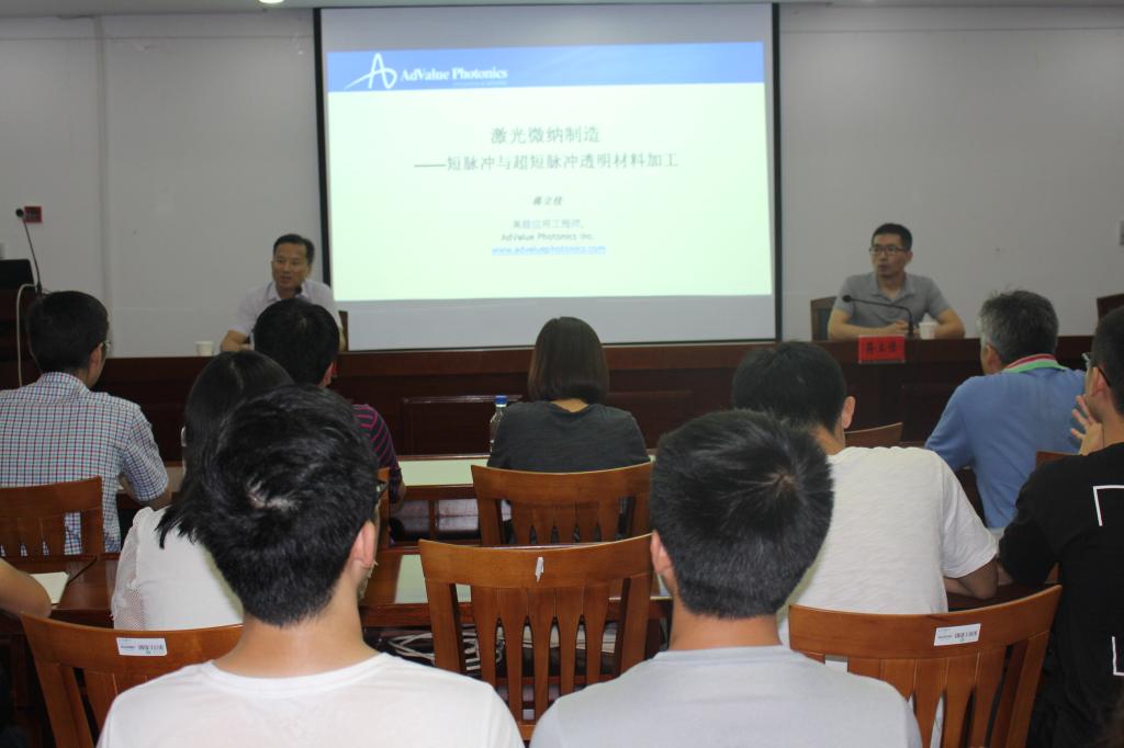9月20日下午,美国AdValue Photonics和苏州图森激光有限公司的蒋立佳博士在我院七楼报告厅做了题为:激光微纳制造-短脉冲与超短脉冲激光对透明材料的加工的学术报告会。报告会由周建忠院长主持,我院多位教师和研究生参加了报告会。