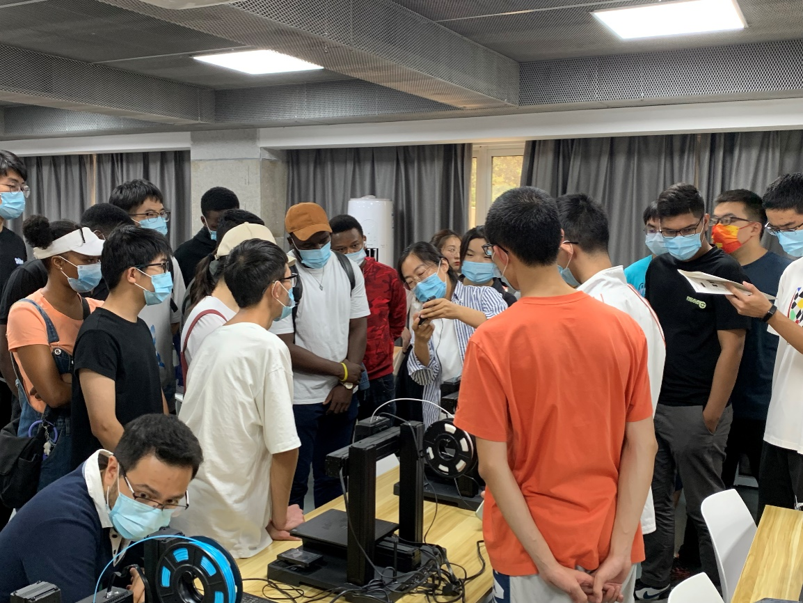 最后在实操训练中,陈婷卓老师给同学们讲解了3D打印机的工作原理、基本结构和设备操作与使用方法,并指导中外学生分组开展实践操作,打印Hello kitty,蝙蝠侠,花瓶等手伴或工艺品。
