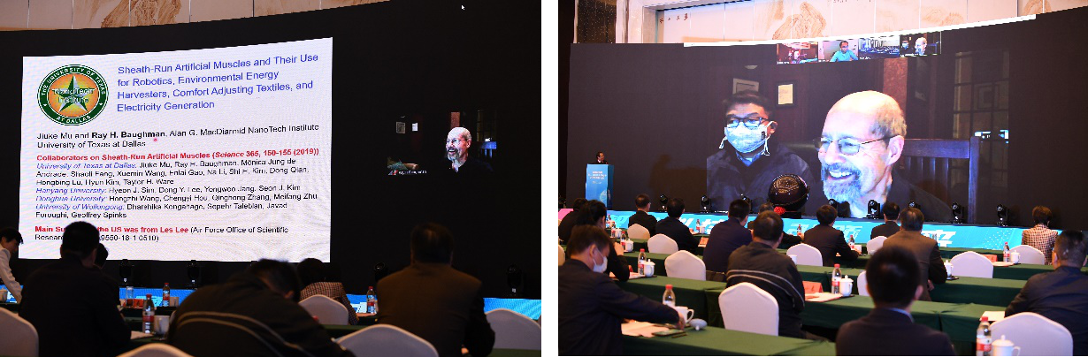 开幕式由伟德国际victor1946党委常委、副校长丁建宁主持。南京航空航天大学校长、中国工程院院士单忠德,湖南大学教授、中国工程院院士罗安以及江苏省科协党组书记、副主席孙春雷,镇江市委常委、宣传部部长孙晓南,伟德国际victor1946党委副书记、校长颜晓红等相关行业、党政领导出席会议。伟德国际victor1946校长颜晓红代表伟德国际victor1946致辞。大会论坛同时邀请美国国家工程院院士、美国德克萨斯大学分校教授Ray.H.Baughman、德克萨斯大学教授Shaoli Fang、美国科罗拉多大学教授Franck Vernerey以及美国科罗拉多大学助理教授Kai Yu视频连线致辞。