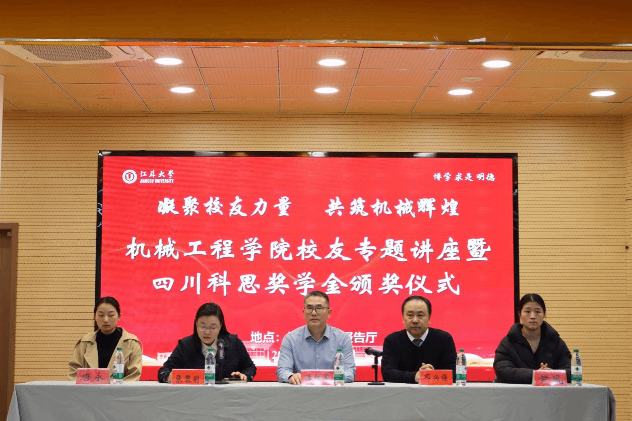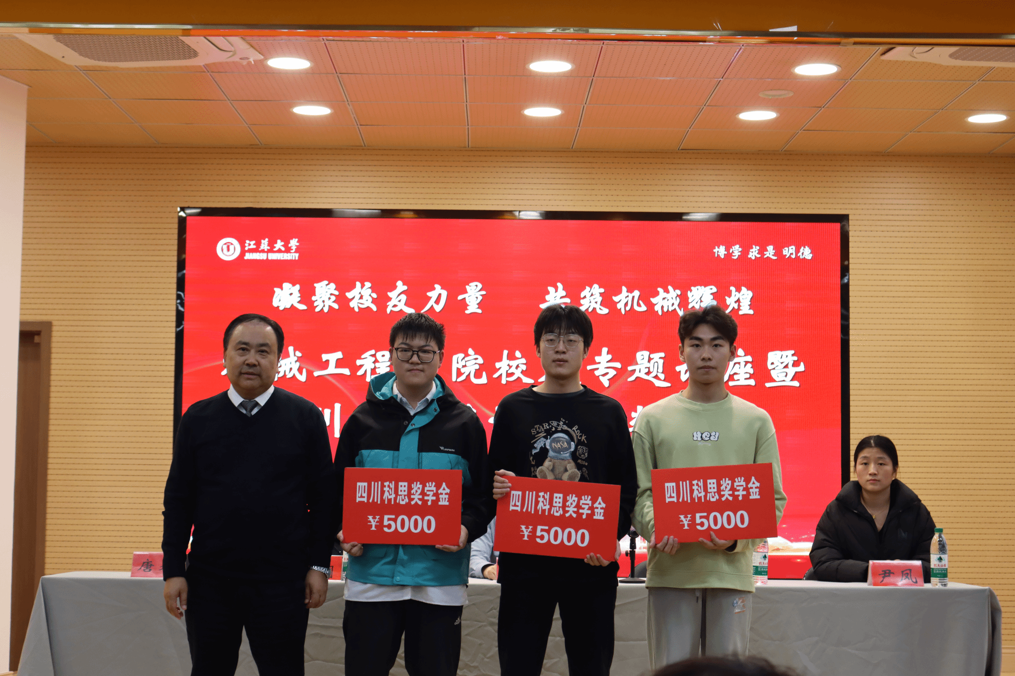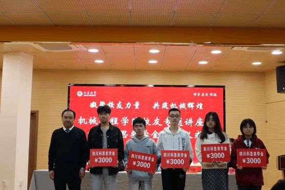 10月26日,依托“益友”科创工作站,机械学院联合伟德国际victor1946学生社区党工委、泓江书院、钟灵书院、梦溪书院在学苑楼305报告厅举行“四川科思奖学金”颁发仪式暨“杰出校友进书院”系列讲座。机械学院党委书记潘红军,机械学院杰出校友、四川科思精密模具股份有限公司董事长邓兴强,学院全体辅导员,获奖学生以及学院部分学生参加。活动由学院党委副书记张黎明主持。
