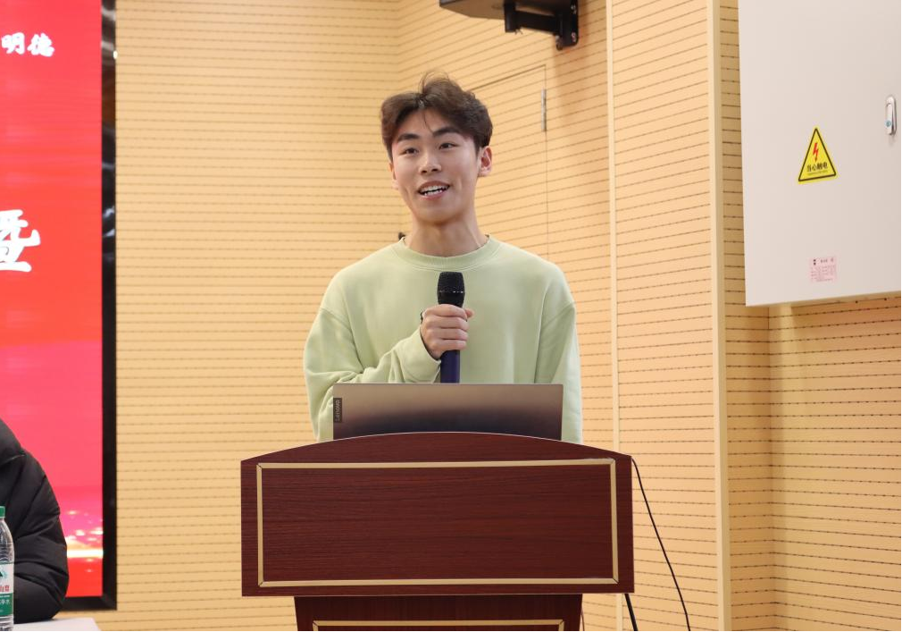 韦金权代表获奖学生发言,由衷地感谢学校和公司给予的关心和帮助,并表示要在今后学习和工作中不断进取,以校友为榜样,踔厉奋发、勇敢追梦,为母校增光添彩。