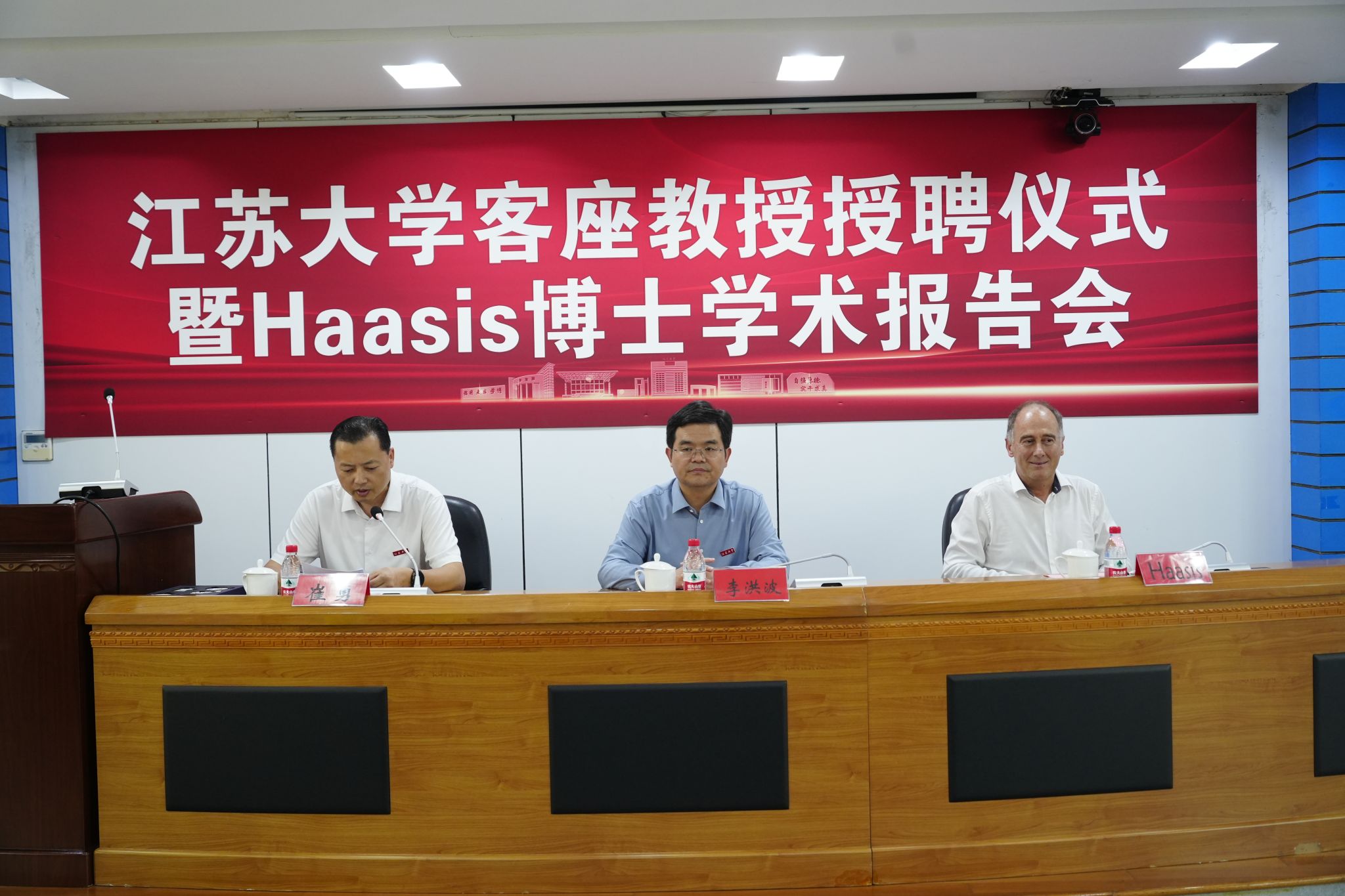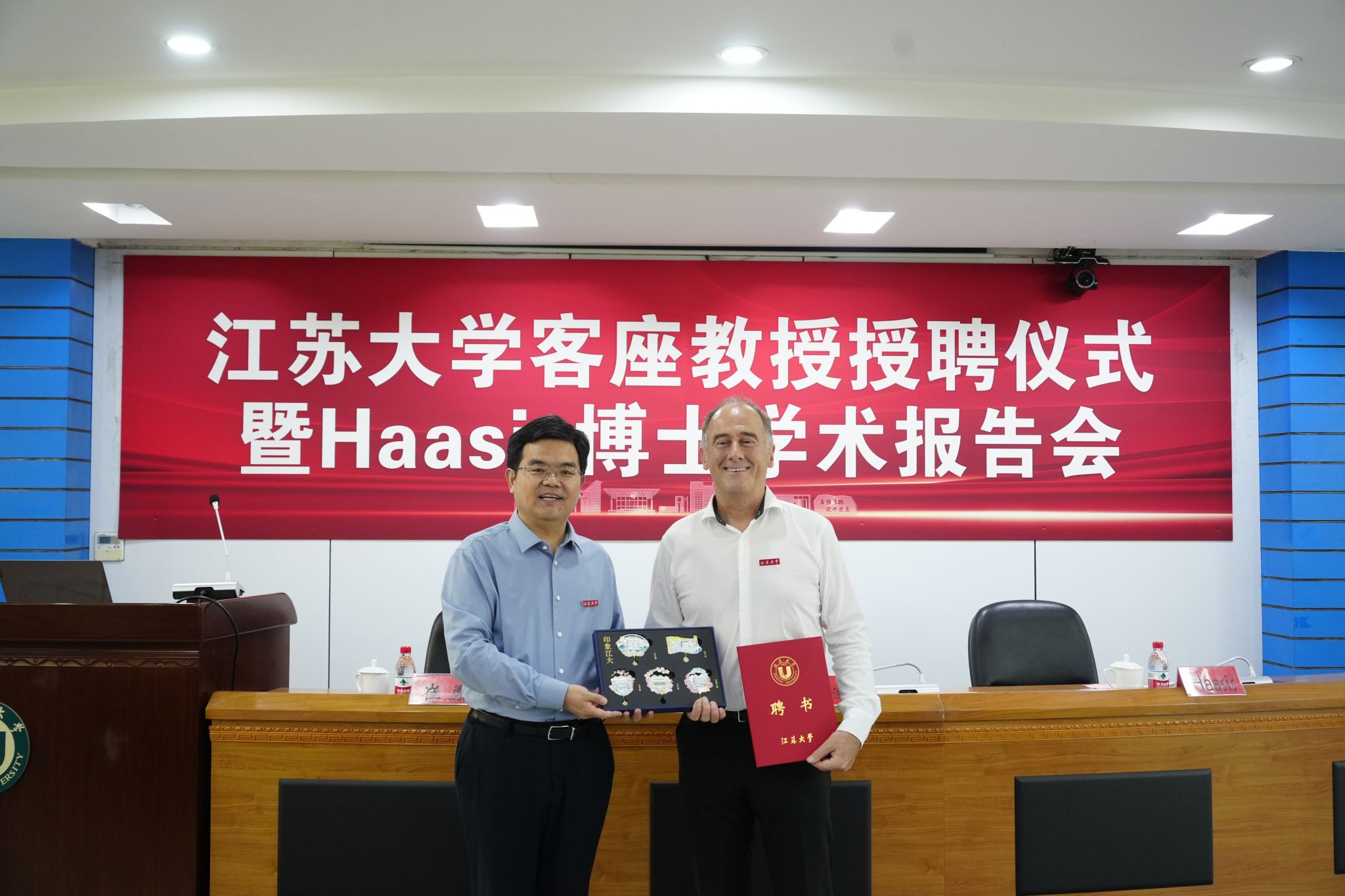授聘仪式上,李洪波对Haasis博士的加入表示热烈欢迎,为Haasis博士佩戴伟德国际victor1946校徽并颁发客座教授聘书。