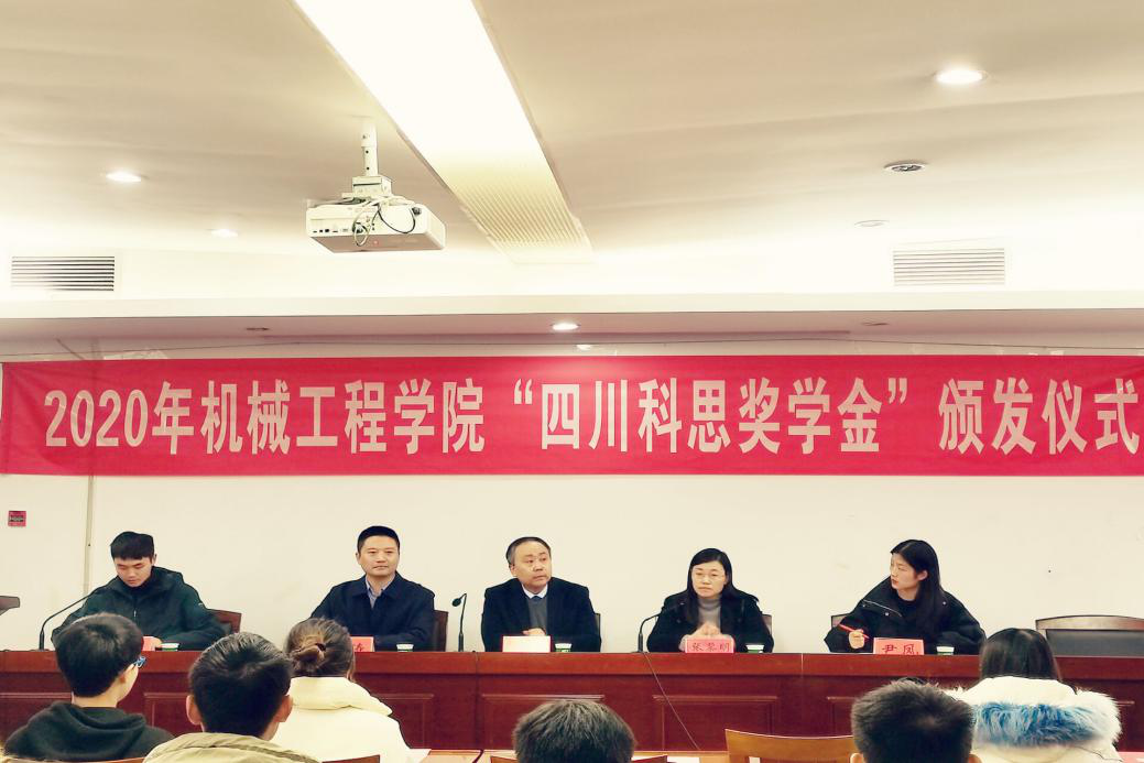 首先,机械学院党委副书记张黎明代表学院对各位嘉宾到来表示热烈欢迎,对获奖学生表示祝贺。她还介绍了学院近年来在学科建设、人才培养和科学研究方面的情况。我校88级机械设计及制造专业校友邓兴强先生向同学们展示了四川科思的发展历程、企业文化、业务领域等情况,希望今后继续加强校企合作,共同培养人才。随后,获奖学生代表张佳乐发言,感谢学校和公司给予的关心和帮助,她表示会在将来的学习和工作中不断进取,成为对社会有贡献的人。最后张黎明书记希望同学们要勇于迎接挑战,立下远大志向,号召大家向杰出校友邓兴强学习,心怀感恩、回报母校。