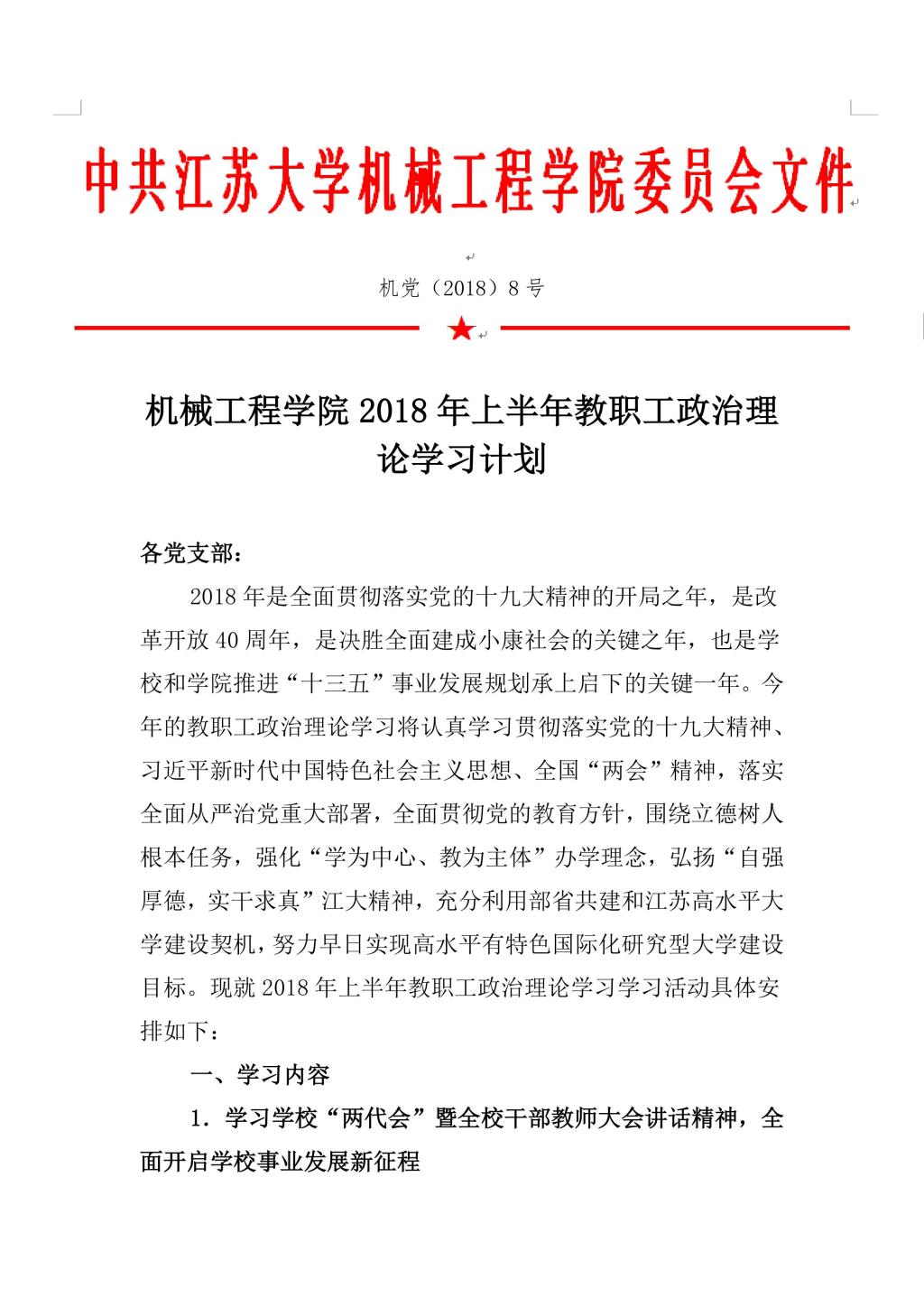 1946伟德国际源自英国2018年上半年教职工政治理论学习计划