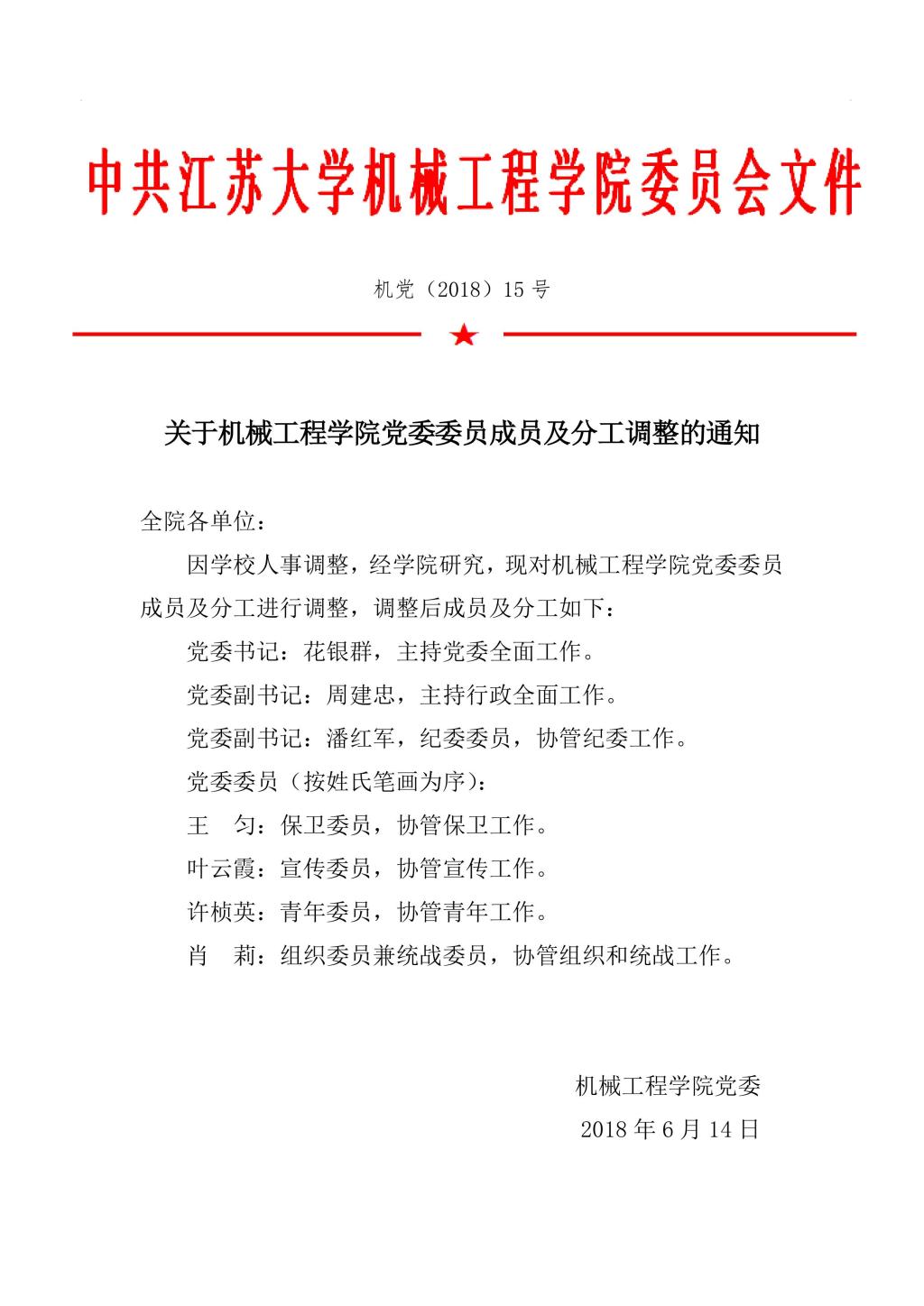 关于1946伟德国际源自英国党委委员成员及分工调整的通知
