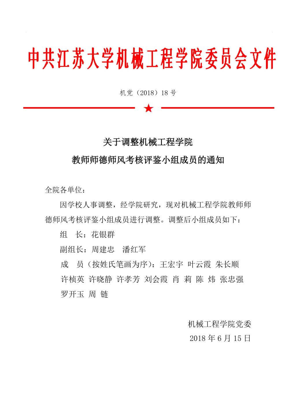 关于调整1946伟德国际源自英国教师师德师风考核评鉴小组成员的通知