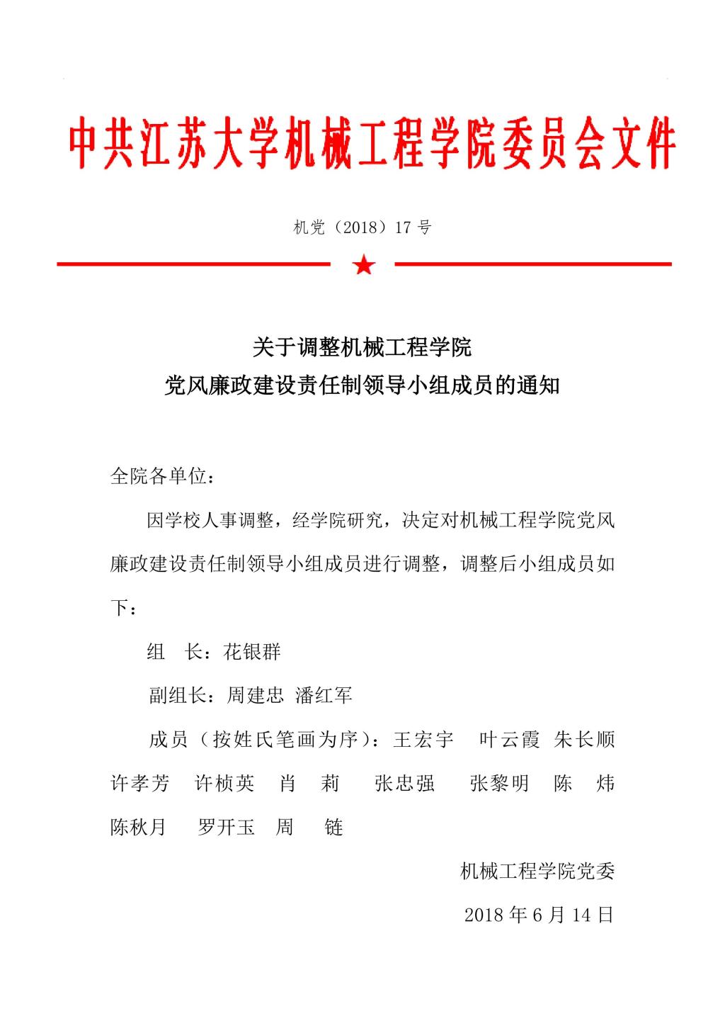 关于调整1946伟德国际源自英国党风廉政建设责任制领导小组成员的通知