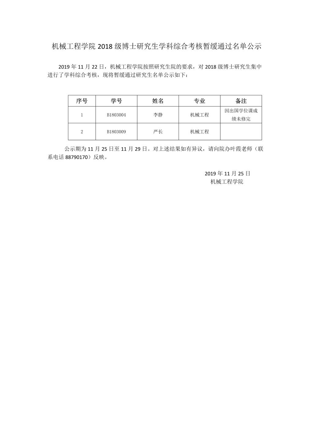1946伟德国际源自英国2018级博士研究生学科综合考核暂缓通过名单公示