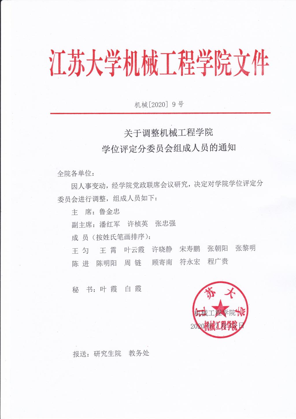 关于调整1946伟德国际源自英国学位评定分委员会组成人员的通知 机械[2020] 9号