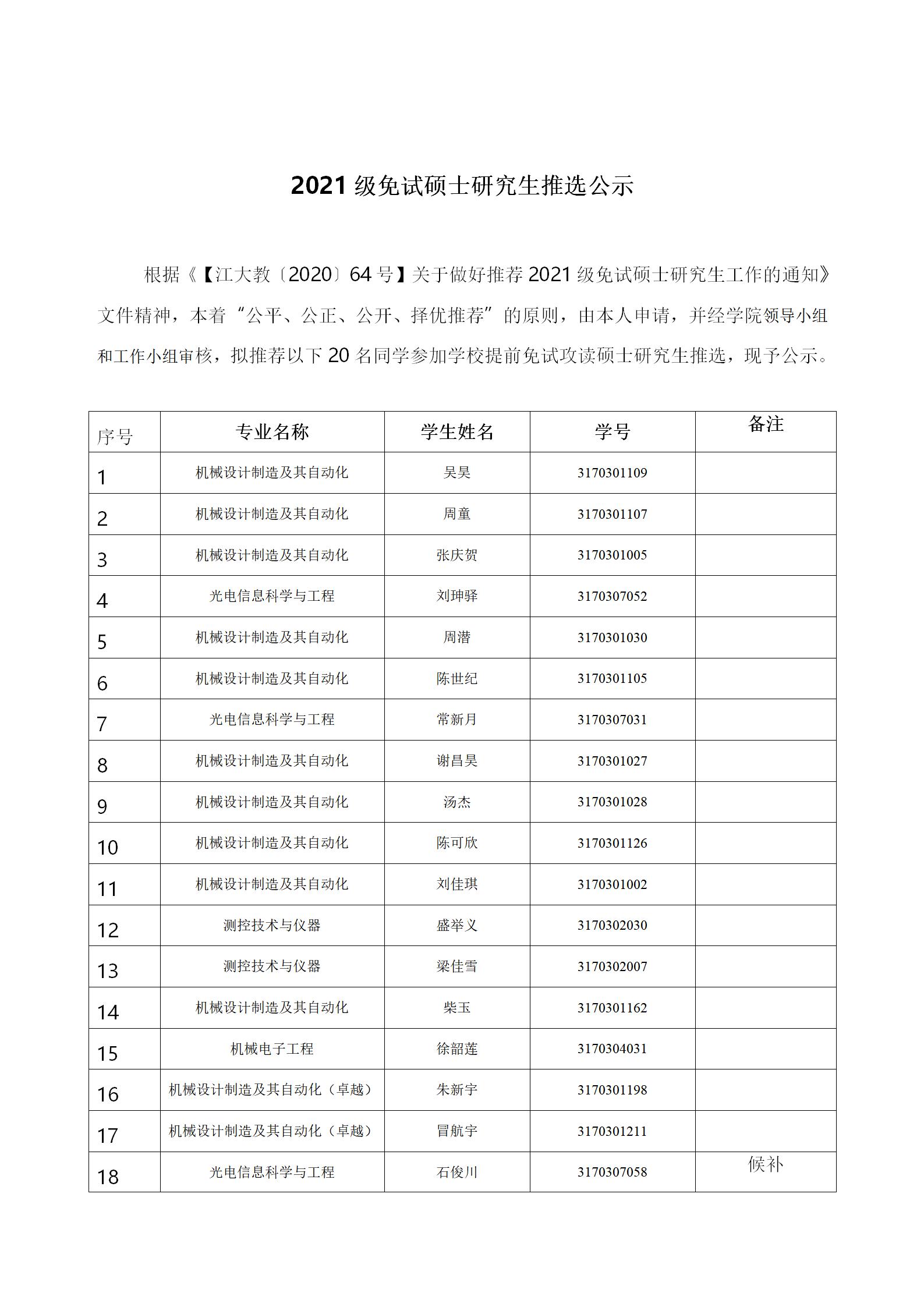 2021级免试硕士研究生推选公示 ,可下载PDF阅读。