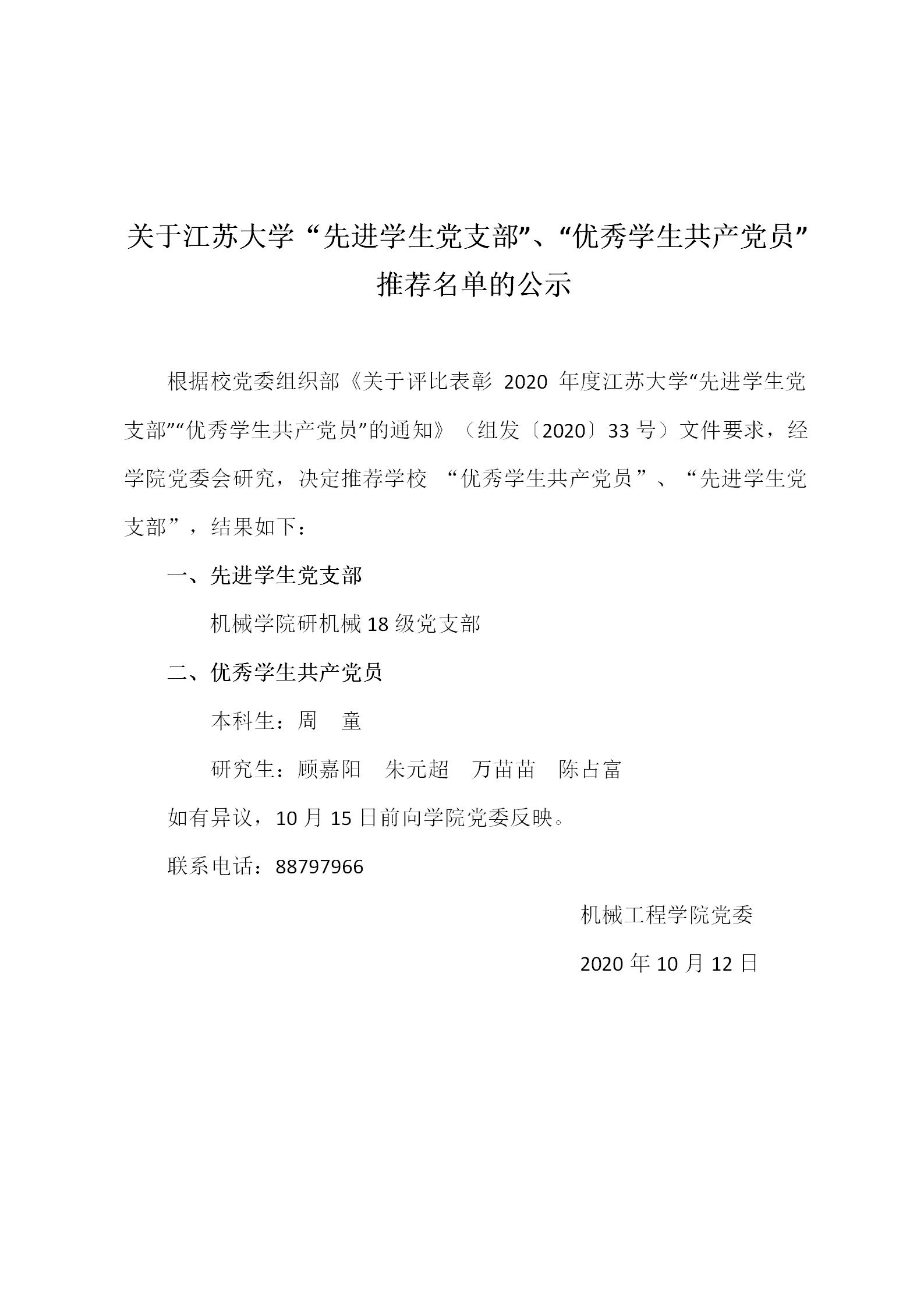 关于伟德国际victor1946“先进学生党支部”、“优秀学生共产党员”推荐名单的公示