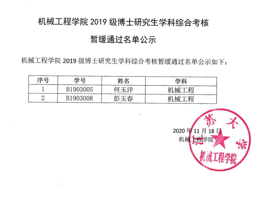 1946伟德国际源自英国2019级博士研究生学科综合考核暂缓通过名单公示如下:
