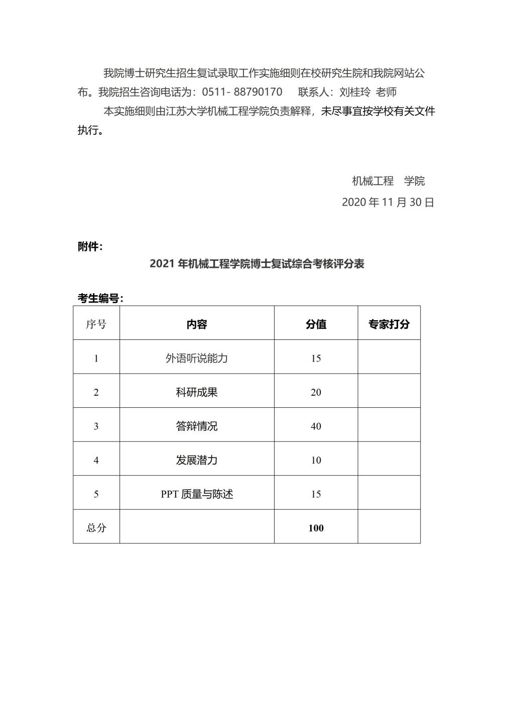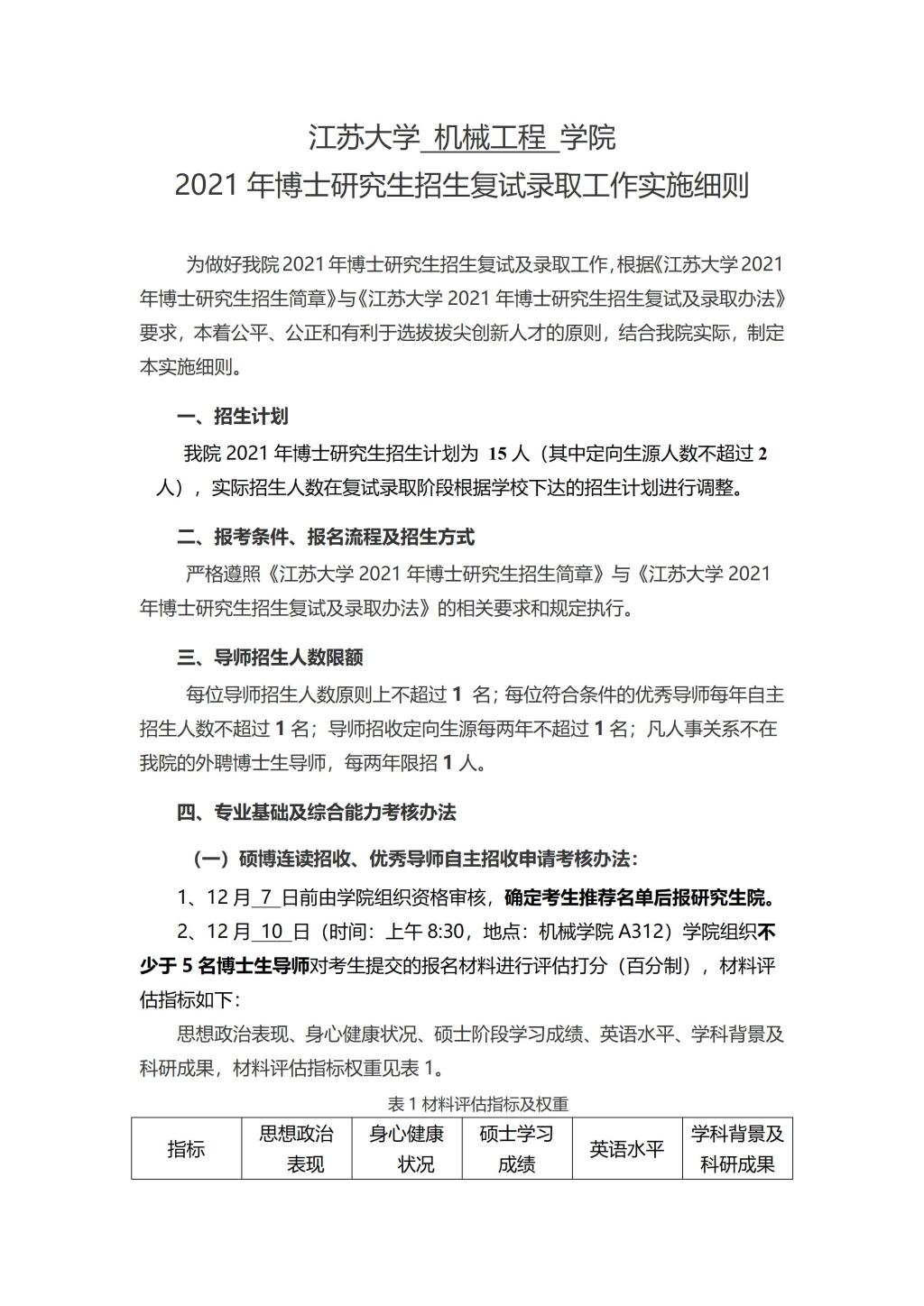 2021年机械学院博士研究生招生复试录取工作实施细则