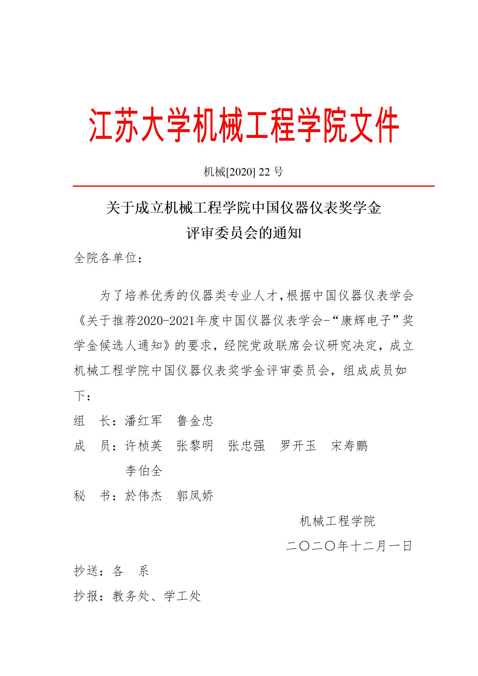 关于成立1946伟德国际源自英国中国仪器仪表奖学金评审委员会的通知