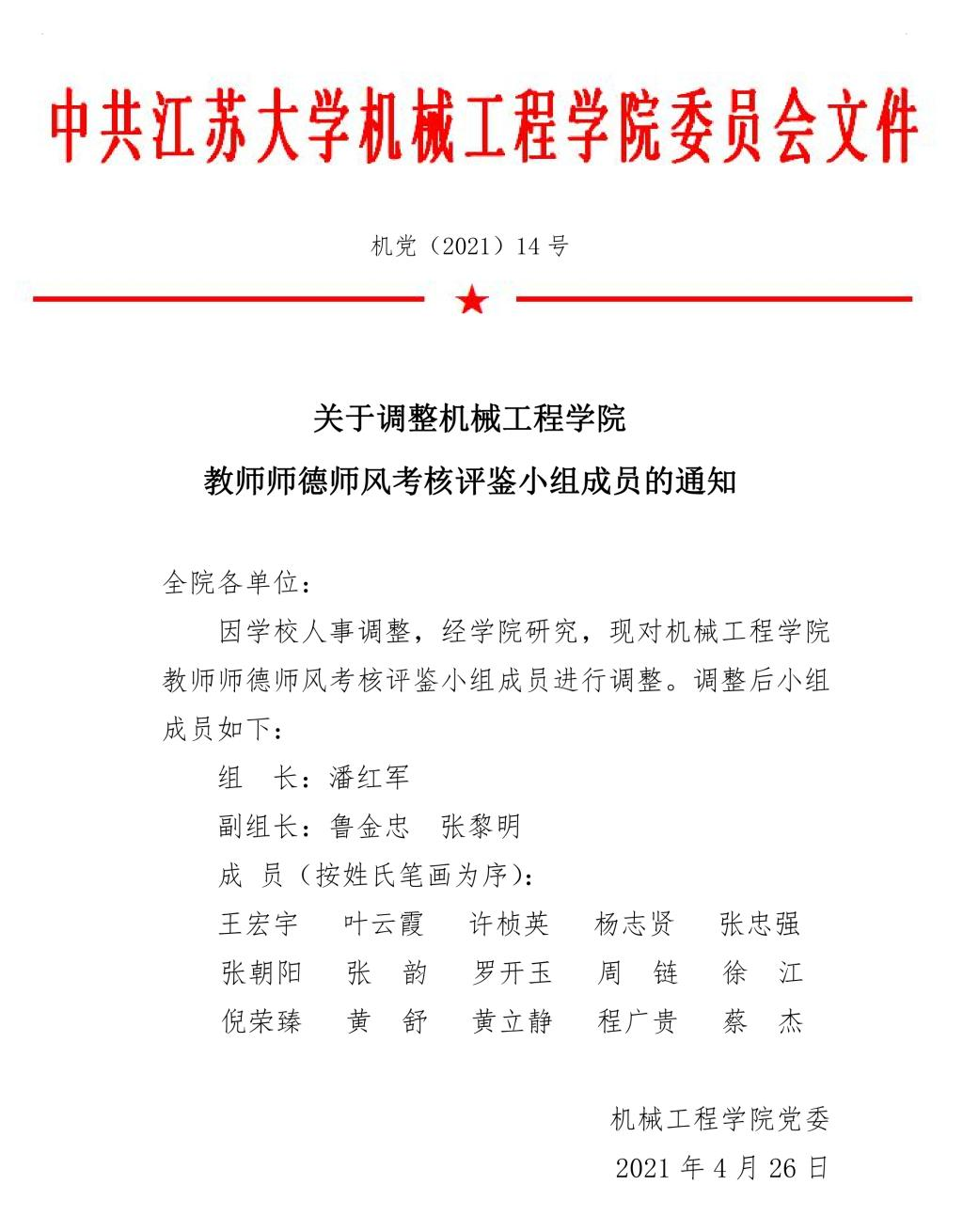 关于调整1946伟德国际源自英国教师师德师风考核评鉴小组的通知
