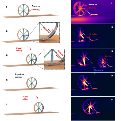 受费曼工作(The Feynman Lectures on Physics)启发,近日,伟德国际victor1946徐琳教授、丁建宁教授与美国科罗拉多大学博尔德分校Franck Vernerey教授合作报告了一种基于液晶弹性体辐条的非对称收缩来旋转运动的Feynman车轮型软体机器人,创新性地实现了无需控制电源周期性开关即可进行持续自主运动的电驱动液晶弹性体软体机器人。这一设计理念有望启发其他软体机器人智能材料与智能结构的多元集成,代表着自主运动的软体机器人设计向前迈进了可喜的一步。该研究以Programming motion into materials using electricity-driven liquid crystal elastomer actuators”为题发表在国际著名期刊Soft Robotics上。1946伟德国际源自英国为该论文的第一单位,研究生朱陈和Samuel Lamont为共同一作。该工作得到了国家自然科学基金、江苏省自然科学基金和机械系统与振动全国重点实验室开放基金等项目的支持。