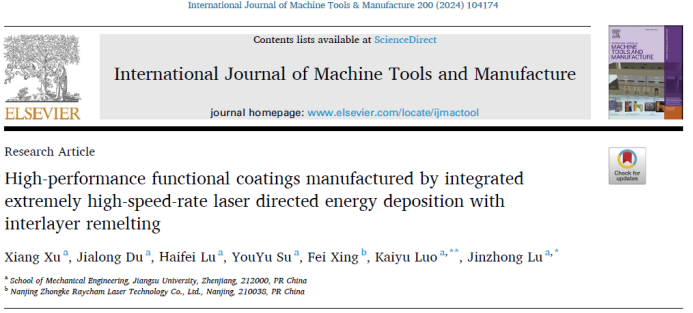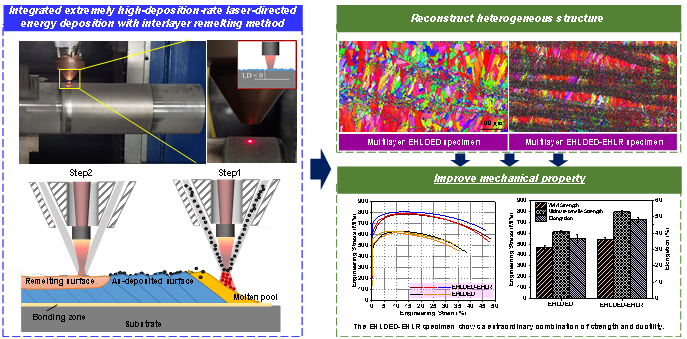 近日,我校1946伟德国际源自英国鲁金忠教授、罗开玉教授团队研究开发了一种新型超高速激光复合增材制造技术(EHLDED-EHLR),显著促进了凝固过程中状晶向等轴晶的转变,形成了以超细等轴晶主导的空间异质结构,材料强韧性实现同步提高。相关研究成果以“High-performance functional coatings manufactured by integrated extremely high-speed-rate laser directed energy deposition with interlayer remelting”为题发表在机械制造领域顶刊International Journal of Machine Tools and Manufacture(国际机床与制造杂志,IF=14)上。