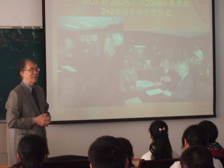 报告会中,吴教授首先介绍了我校光电专业的2+2国际合作办学学生到加拿大罗里尔大学后的出色表现以及他们的自身体会,接着介绍了光电子学的内涵及其应用前景,最后介绍了2+2国际合作办学所需要的前期准备以及相关流程。会后,吴教授与光电信息科学与工程专业的师生们进行了互动交流,就光电子专业课程的双语和英语教学、2+2国际合作办学等问题进行共同探讨。此次活动的开展,进一步推动了我院的国际化合作办学的发展。