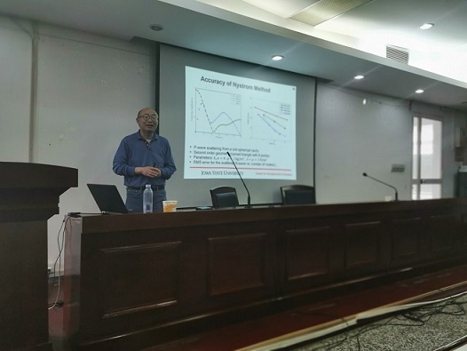 10月9日,应我院仪器系邀请,美国艾奥瓦州立大学 (Iowa State University) 电气与计算机工程系教授Jiming Song在学院7楼学术报告厅作题为“Efficient Modeling of Electromagnetic and Ultrasonic Wave Propagation and Applications in Non-destructive Evaluation”的学术报告。报告会由我院仪器系主任宋寿鹏教授主持,全院100余名师生参加了报告会。