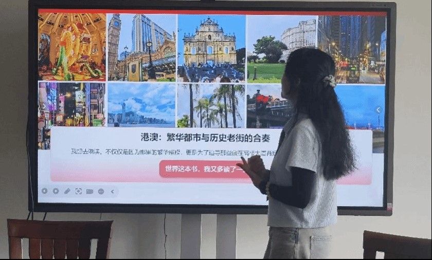 Then, the students took turns to share their experiences and feelings of overseas study. In this summer offline overseas study, three students went to Hong Kong, Singapore and Japan for study, they introduced the overseas study experience from various aspects in the symposium, they shared different cultural environments and scenic spots, and they also told about the different education modes and teaching environments they felt in the classrooms of international famous schools, which greatly expanded their international perspectives and deepened their This greatly expanded their international perspective and deepened their understanding of foreign environments. At the same time, the students told that they experienced the international teaching methods in the international teaching environment, and made deep friendship with students from different schools, and completed the project tasks, made English speeches and wrote academic papers together, which significantly improved their interpersonal skills, foreign language speaking skills and teamwork spirit. Finally, Wan Yinchen said, after listening to the students' report can obviously feel their growth and transformation, compared to the pre-trip meeting to become more confident, more cheerful, a more in-depth understanding of the international environment, the report gave full affirmation.