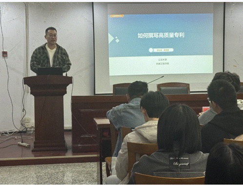 On November 4th, relying on the Party building and ideological platform "Yiyou" Science and Technology Innovation Workstation, the School of Mechanical Engineering, together with the "Yiyou" Science and Technology Innovation Counselor Studio, Hongjiang Academy, and Zhongling Academy, held a patent application experience sharing session with the theme of "Innovation with Seal, Patent Sailing" in the seventh floor lecture hall of the Machinery Building. The event invites Jiang Gaoqiang and Du Jialong, PhD students from the School of Mechanical Engineering, as keynote speakers. Graduate students from the school actively participate in the event.