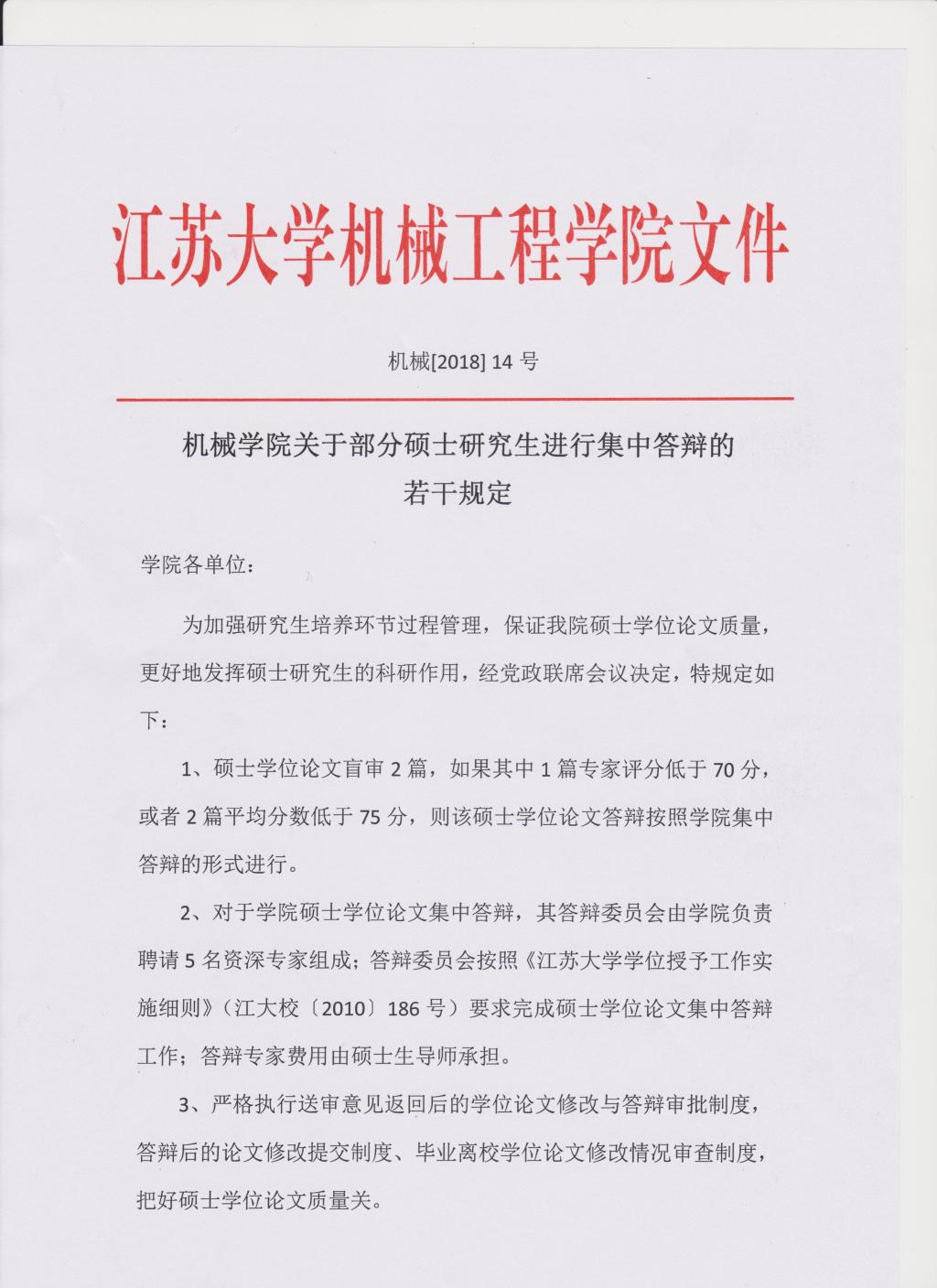机械学院关于部分硕士研究生进行集体答辩的若干规定