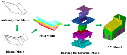 . CAD, CAE and CAM are integrated together to constitute the digital manufacture system of mechanical and electrical product. In the die digital manufacture system, the geometric model of the deck lid is the most basic core data of the product, and is the most primitive basis for the design, analysis and manufacture of the die. Through CAD, CAE and CAM, a large number of database stored and transmitted directly to the various aspects of the production process, so as to realize the integration of design and manufacture.