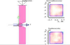 Fig.1 Design example: (a) Optimization\PowerBalance (b)Receivers\SpatialLuminance 2.Ultrafast dynamics in metal films.The pump probe technique is used to study the motion of carriers in the metal films which excited by femtosecond laser pulses. Mainly focus on (1) the nonequilibrium heat transport time of electrons. (2) the temperature of both the electrons and the lattices in metal films.