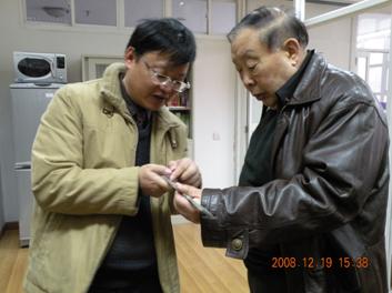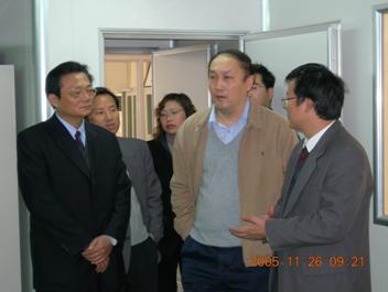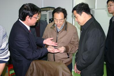 张永康教授(左一)向卢秉恒院士(中)和国家基金委机械学科雷源忠主任(右二)介绍研究成果